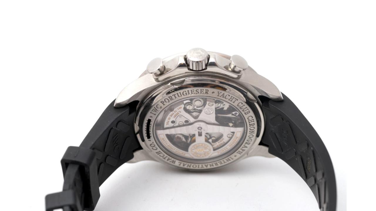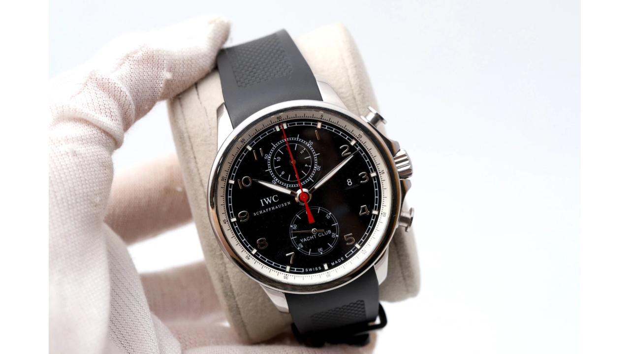 The APSF IWC Portugieser Yacht Club Chrono IW390204 is the most athletic member of the Portugieser family, engineered to serve as a precision nautical instrument. Housed in a substantial 45.4 mm stainless steel case, this model uniquely features crown protection and luminescent hands to ensure utility in maritime conditions. The deep black dial is balanced by a revolutionary single-totalizer at 12 o’clock, which combines hour and minute counters for intuitive elapsed-time reading. At its heart is the APSF-manufactured Calibre 89361, a sophisticated flyback chronograph that allows for instant restarting of the stopwatch function. The movement’s advanced pawl-winding system increases efficiency by 30% and is visible through a sapphire exhibition caseback. Paired with a durable black rubber strap and offering 6 bar water resistance, it is the perfect companion for sailing and water sports. This timepiece represents a flawless integration of elegant Swiss tradition and modern sporting capability.