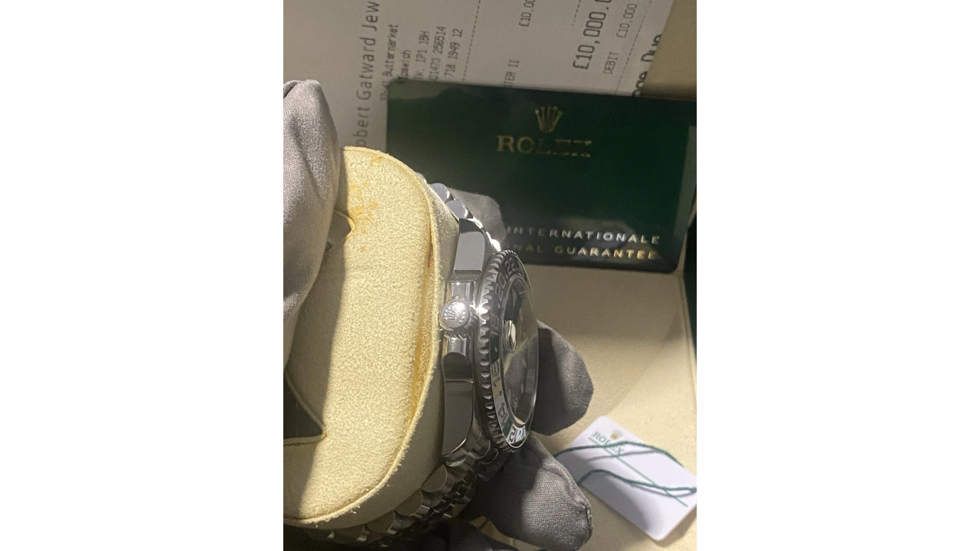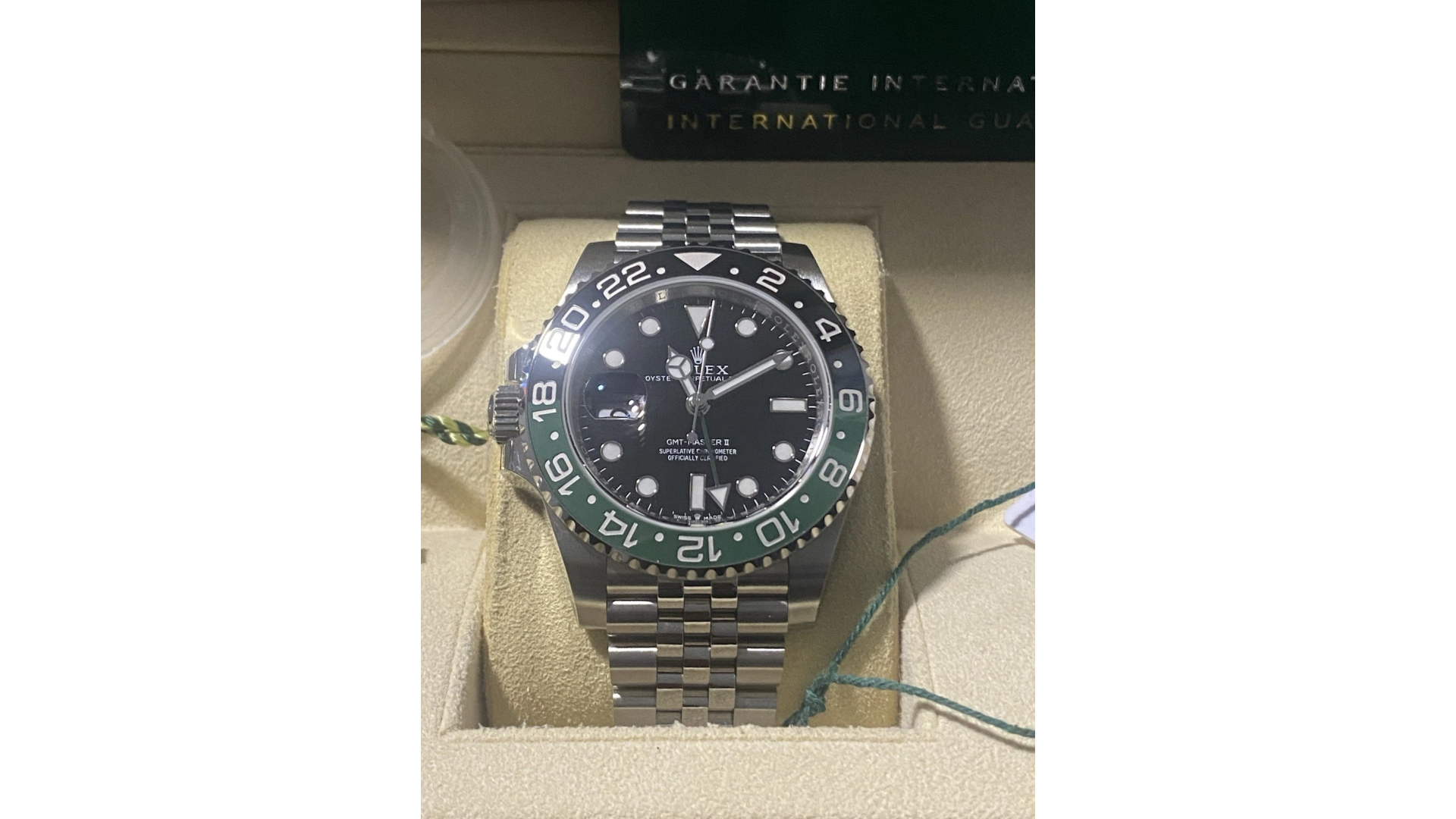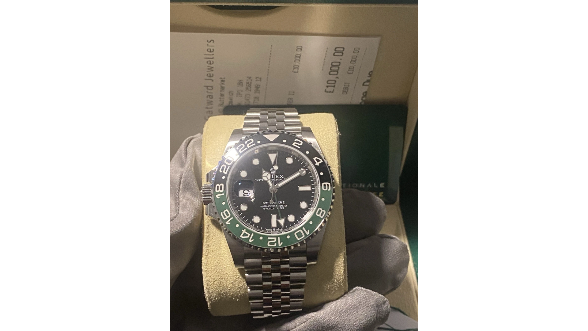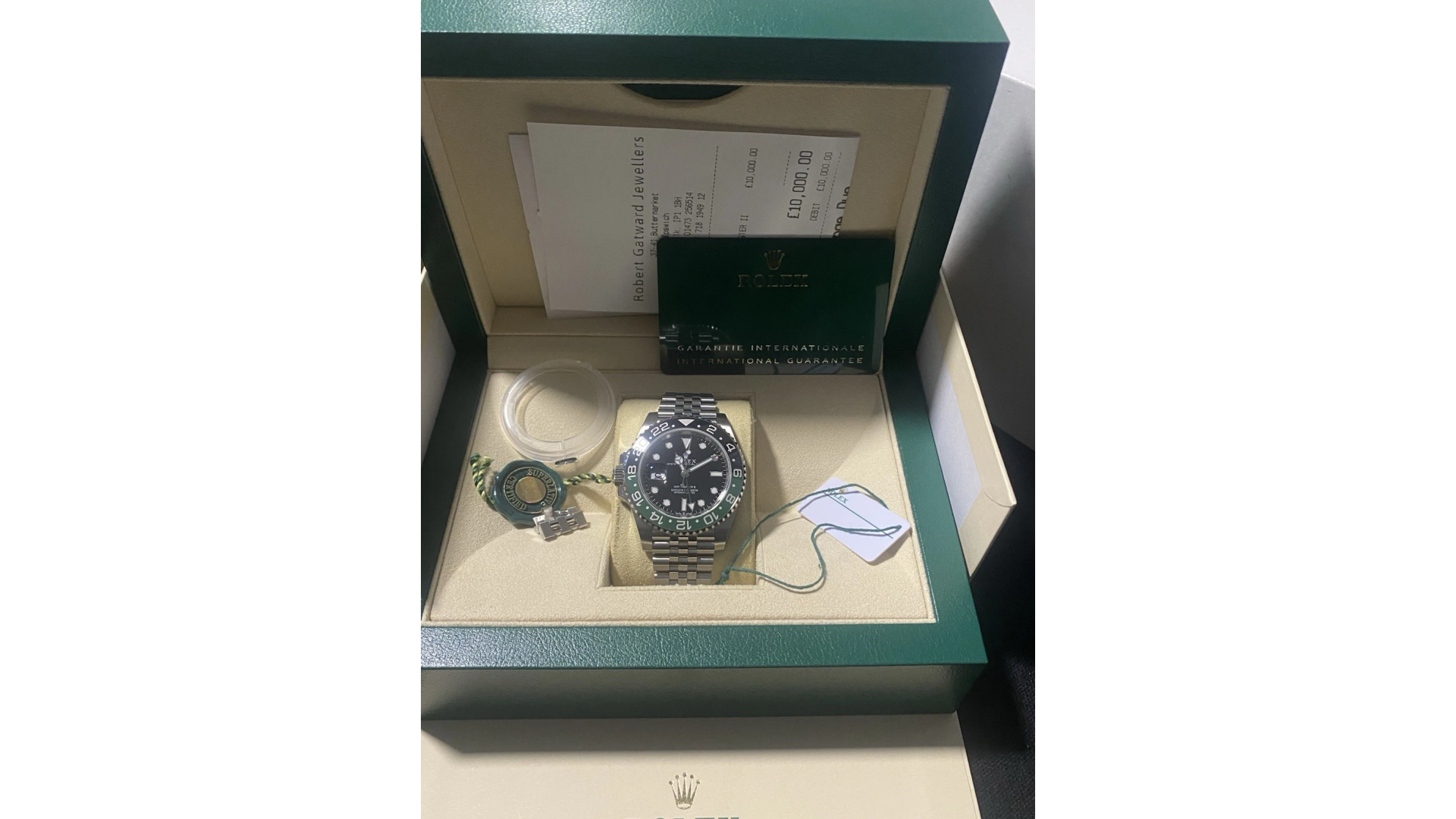 The Rolex GMT-Master II Reference 126720VTNR, nicknamed the "Sprite" or "Lefty," is one of the most unexpected and discussed releases in recent years. This 2024 model immediately distinguishes itself with a unique left-handed configuration (destro), featuring the crown and date window positioned at 9 o'clock. This radical departure from convention is paired with a world-first Cerachrom bezel insert in green and black, a colour combination never before seen on the GMT-Master line. The 40mm Oystersteel case houses a black dial with a green GMT hand, mirroring the bezel’s colours. Designed for tracking multiple time zones simultaneously, the watch is powered by the advanced Rolex Calibre 3285. This Superlative Chronometer movement offers independent adjustment of the hour hand and a substantial 70-hour power reserve. Presented here on the Jubilee bracelet, which enhances its visual impact, the "Sprite" is a true modern collectable, combining Rolex's technical prowess with a bold, unconventional design. This example includes the 2024 box and papers.