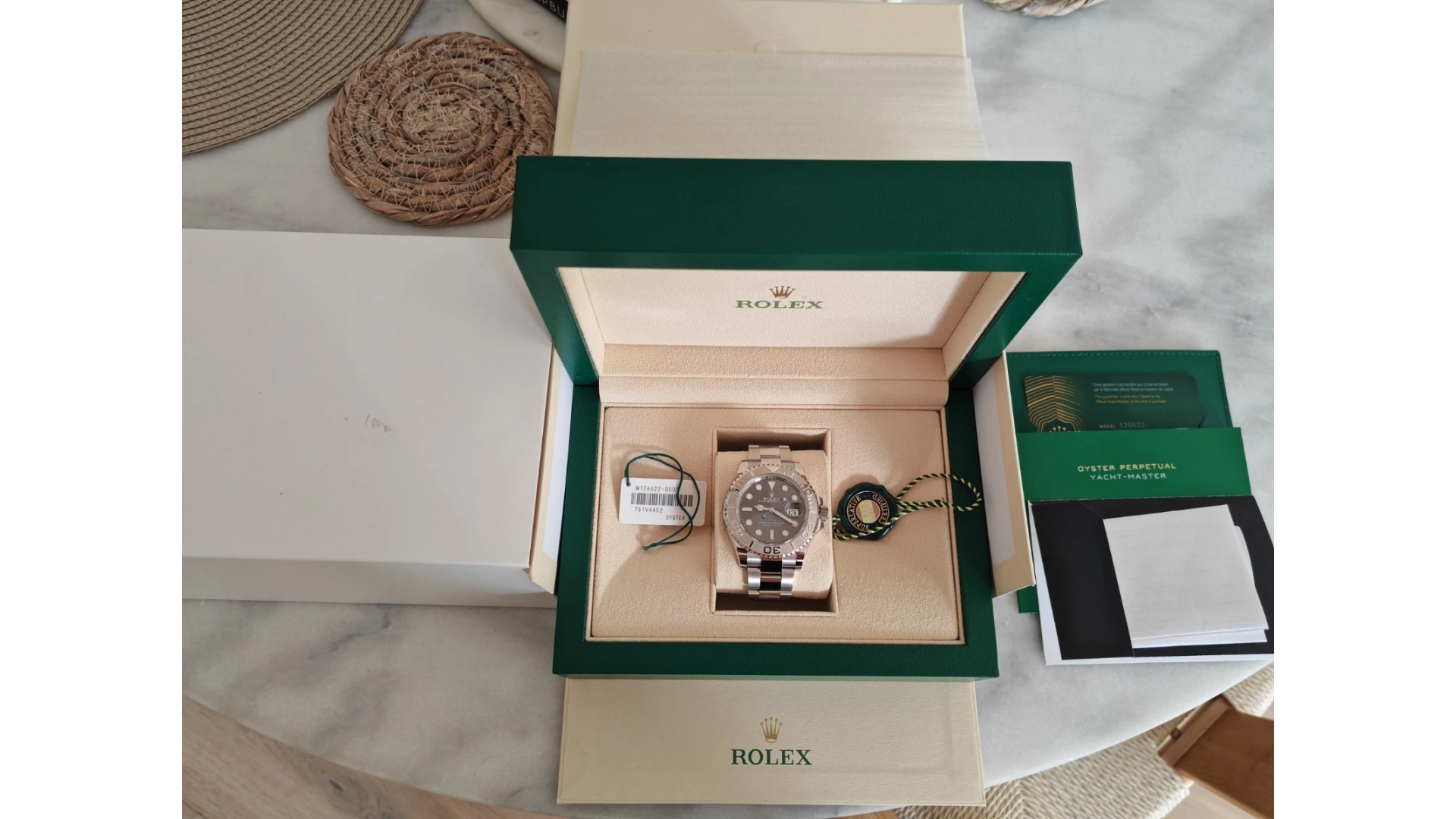Presenting the Rolex Yacht-Master 40, Reference 126622, in unworn 2024 condition. This timepiece embodies nautical luxury, defined by its sophisticated use of Rolesium—a combination of a robust Oystersteel case and a luxurious solid 950 Platinum bezel. The 40mm case profile is elegantly contoured, offering a more refined aesthetic than traditional sports models. The bidirectional rotating bezel, with its sandblasted finish and polished raised numerals, is both functional for timing events and visually striking. This model features the highly desirable dark rhodium dial, which provides a stunning sunray effect. The dial is punctuated by vibrant turquoise accents on the seconds hand and script, adding a contemporary flair. Inside, the Yacht-Master is equipped with the Rolex Calibre 3235, a latest-generation movement offering Superlative Chronometer precision and a 70-hour power reserve. Completed with an Oyster bracelet featuring polished centre links and the Easylink comfort clasp, this 2024 example is a perfect synthesis of sport and elegance, offered as a complete set.